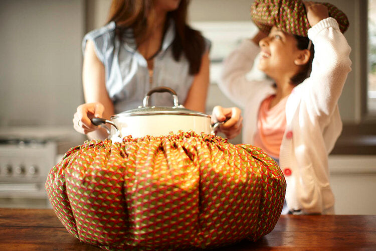 Bring your food to a gentle boil and simmer it before covering with a lid and placing in the Wonderbag. Simmering times will vary based on recipe, type of food and altitude. Place the boiling pot immediately from the stove onto a trivet or tea towel inside the Wonderbag